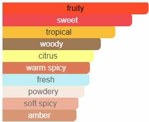 Base: Vanilla, Patchouli, Cedarwood, Sandalwood, Amber, Musk